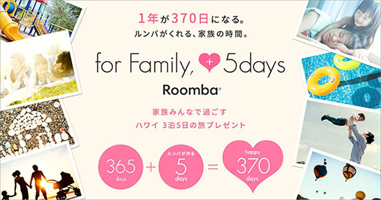 6月3日~7月26日まで「for Family,+5daysキャンペーン」を実施。公式サイトは、この夏から「ルンバで家族の時間をつくろう」をコンセプトに一新する