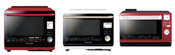 「まかせて調理」機能を搭載しないモデルも同時に発売する。左から、30Lモデル「AX-SP200」(レッド系)、「AX-MP200」(ホワイト系)、「AX-CA200」(レッド系)