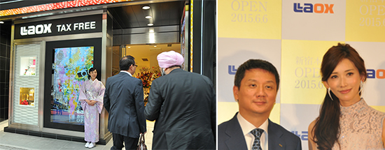 「コンセプトが全然違う」と自信をのぞかせるラオックスの羅怡文社長とオープンに駆けつけた台湾の人気女優リン・チーリンさん(右)