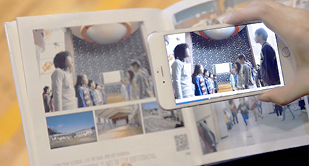 アプリを立ち上げてQRコードにかざすと、子どもたちの思い出の写真が動きだす