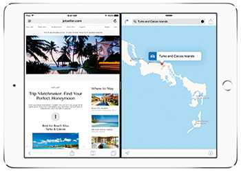 iPadはマルチタスク機能に対応。スワイプするだけで最初に使っていたアプリケーションを終了せずに別のアプリケーションを同時に使うことができるほか、素早くタップすると、二つのアプリケーションを横にならべて同時に使うことができる新機能「Split View」にアクセスできる。FaceTimeで通話やビデオ会話を続けながら好きなアプリケーションを使うことができる「Picture-in-Picture」機能も備える。使用中のアプリケーションに合わせたアクションを表示する「Shortcut Bar」は、入力がこれまで以上に速く、簡単。新しいMulti-Touchジェスチャー機能によってテキストの選択と編集もこれまで以上に簡単にできる。