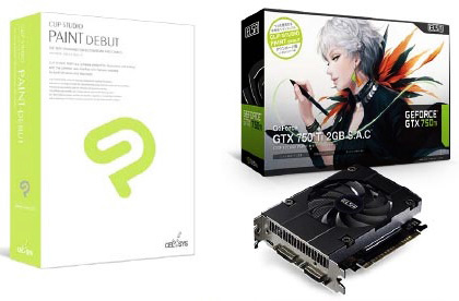 エルザジャパンは、グラフィックボード「ELSA GeForce GTX 750 Ti S.A.C」と、セルシスのペイントソフト「CLIP STUDIO PAINT DEBUT」をセットにした特別限定パッケージを6月20日に発売する。価格はオープンで、税込の実勢価格は2万3980円前後の見込み。