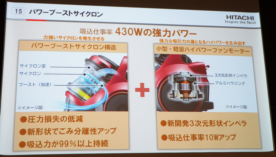 「パワーブーストサイクロン」を見直して吸込仕事率430Wを実現