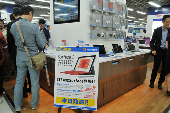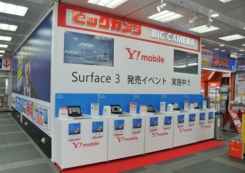 ビックカメラ有楽町店のエントランスでSurface3をプッシュ。世界初のLTE対応やYモバイルとの連携もアピール