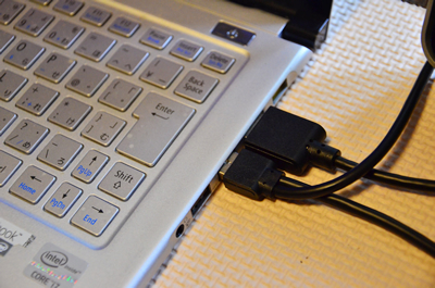 ディスプレイケーブルとUSBケーブルをPCに接続するだけで利用できる