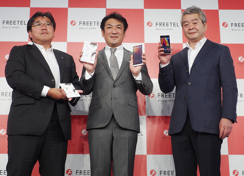 発表会にゲストとして招かれたヨドバシカメラの日野文彦 常務取締役販売本部長は「ヨドバシカメラでは今年をSIMフリー元年と位置づけ販売を強化しており、FREETELに大きな期待を寄せている」と語った。また、法人向け販売のパートナーとしてダイワボウ情報システムの松本裕之取締役販売推進本部長も登壇。「ソリューション展開の中でWindows 10 Mobile搭載のスマートフォンを販売していきたい」と語った。