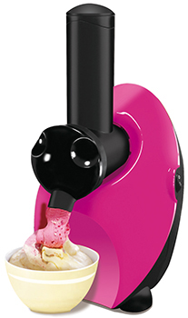 果物をアイスクリームやシャーベットのような食感で楽しむことができる調理家電。冷凍した果物を本体の投入口に入れ、差し込み棒を押すだけで新感覚のフローズンデザートを作ることができる。野菜をミックスしてヘルシーで健康的なるスイーツを作ることもできる。