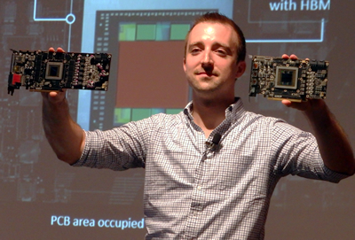 GPUと一緒にメモリーを実装したHBMテクノロジー(右)