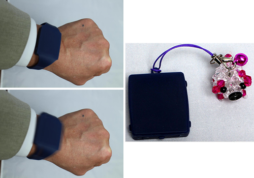 振動で時を刻む視覚障がい者向けの触感時計、腕時計型とストラップ型を用意