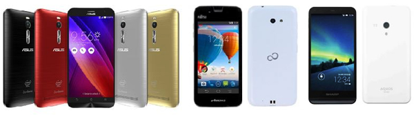 左から、ASUS製「ZenFone2」、富士通製「ARROWS M01」、シャープ製「AQUOS SH-M01」の3機種を追加