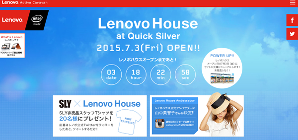 ハーフブラジリアンカットを提唱するビキニブランド「ALEXIA STAM」のデザイナーで実業家の山中美智子さんをレノボ・ハウスのアンバサダーに起用。山中さんがさまざまなイベントに参加し、レノボ・ハウスをさらに楽しく盛り上げる。また、山中さんがプロデュースした地元鎌倉周辺の食材を生かしたオリジナルスムージーも提供する。