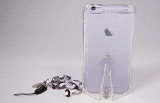 底部に幅を持たせることによって、スマートフォンを自立することができるので、両手がふさがった状態でも画面を確認でき、自撮りやテレビ電話にも適している。
