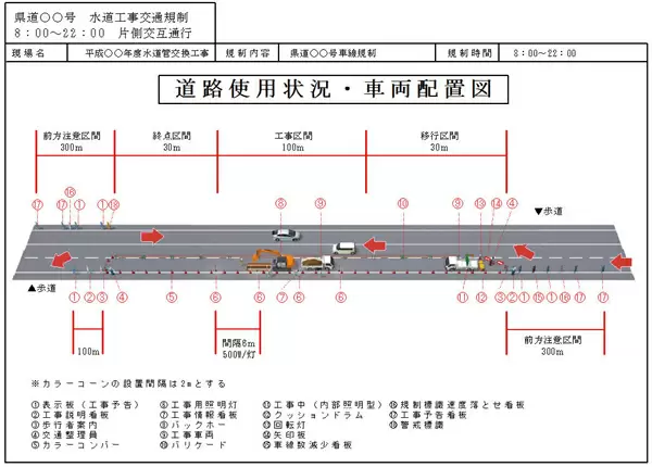 道路使用許可申請時に必要な車両配置図や現場状況図などをつくることができる「プレゼンボードデザイナー」が付属しており、作成した3Dイラストに図形やテキストを追加して、テンプレートや会社名、ロゴなども自由に配置できる。