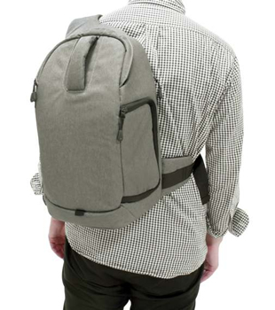収納スペースは、上部に1つ、背中側に1つ備える。多少の雨なら防げる防滴カバーが付属する。サイズは幅25×高さ40×奥行き16cmで、重さは700g。