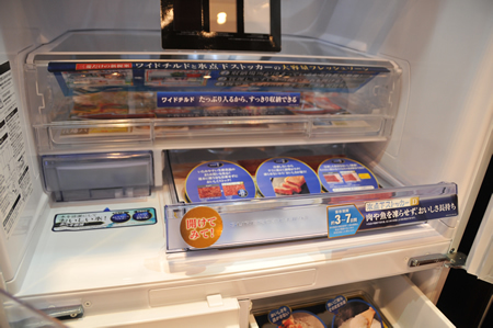 新製品では、冷凍した肉や魚を「氷点下ストッカー D」に移せば、約90分経てば包丁で切れる硬さにまで解凍できる。マイナス3~0℃の低温で解凍するので、解凍ムラもなく、使い切れなかった分はそのまま保存することもできるというわけだ。