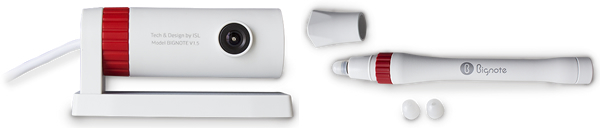専用カメラとビデオ解析技術を利用することで、テレビやPC用ディスプレイ、プロジェクター投影面に電子黒板機能を追加できるユニット。
