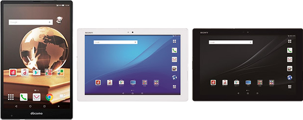 「AQUOS PAD SH-05G」(左)と「Xperia Z4 Tablet SO-05G」(中、右)
