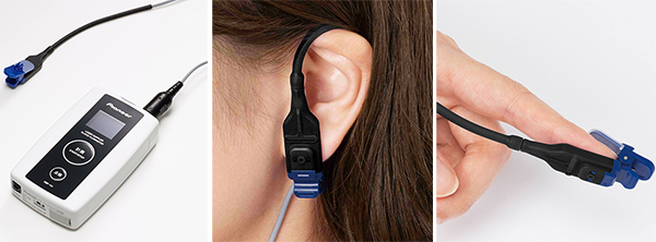 パイオニアが長年培ってきた光ディスクの読み取り技術を応用して自社開発した小型血流センサ素子を内蔵したプローブを、手・足などの体表に接触させることで血流量を測定できるほか、プローブ先端部分に取り付けたクリップで測定部位を挟み込めば、手指、足指または耳たぶなど突起した部位での測定も容易に行うことができる。