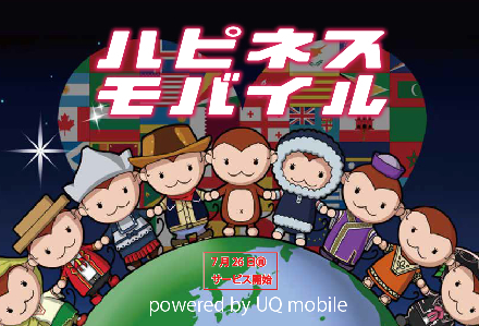 「ハピネスモバイル」は、KDDIバリューイネイブラーのMVNOサービス「UQ mobile」を活用して提供するサービス。「もしもしモンキー」全20店舗で取り扱い、即時開通に対応する。