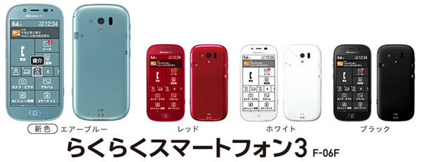富士通は、スマートフォン「らくらくスマートフォン3 F-06F」の新色「エアーブルー」を、NTTドコモを通じて7月31日に発売する。