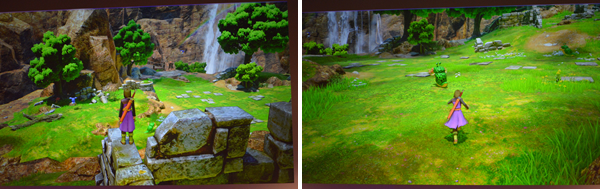 戦闘画面も3D仕様と2D仕様の2パターンを切り替えることが可能。往年のドラクエに親しんだ世代でも、違和感なく新作をプレイすることができる。イベントシーンでは、3Dと2Dの画面が連動する演出も用意している。