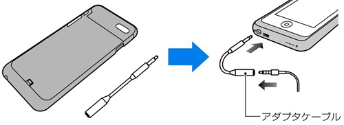 専用アダプタケーブルが付属。充電カバーを装着したままで有線イヤホンで音楽を聴くことができる