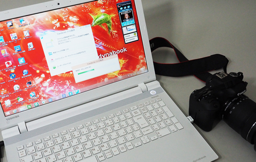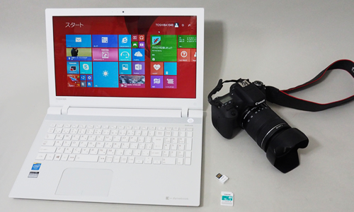 ノートPC「dynabook」とTransferJet搭載SDHCメモリカード、「EOS 8000D」
