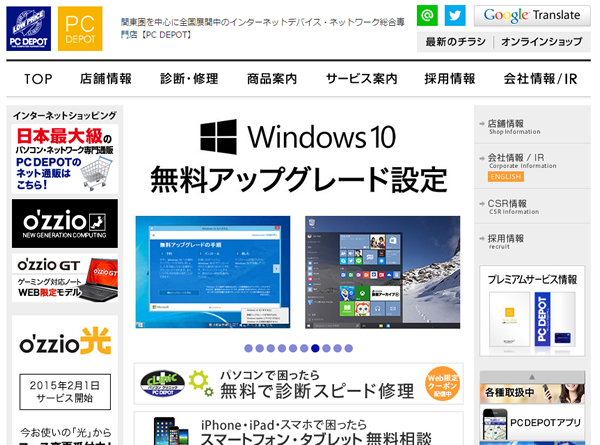 中でも面白いのがピーシーデポコーポレーション(PCデポ)の対応だ。「無料アップグレード設定キャンペーン実施中」として、PCデポの店頭やホームページで紹介されている「Windows 10 無償アップグレード設定クーポン」を使えば、パソコンやタブレットを最大4台まで無料でアップグレードしてくれる。事前予約は不要で、他店で購入したパソコンでも可能だ。「最大4台」の中身も、家族だけではなく、友人のパソコンでもOKとしている。Windows 10の無償アップグレードを一つのイベントとし、紹介客や新規客の来店獲得につなげる意図が読み取れる。