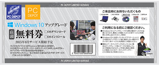 PCデポの「Windows 10 無料アップグレード設定クーポン」