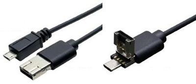 入力側のコネクタには、USB-AとマイクロBのどちらでも使える「変形コネクタ」を備える。