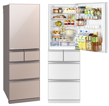 プレミアムタイプの5ドア片開き冷蔵庫「MR-B46Z」。3~4人家族でもたっぷり使える