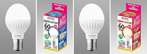 E17口金で広配光タイプのLED電球2機種、日立アプライアンスから