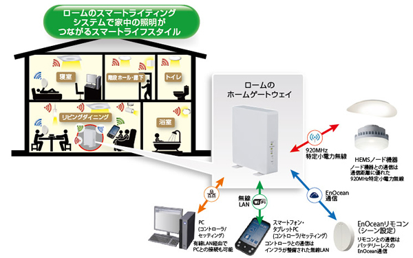 ロームは、家中の照明をスマートフォンやEnOceanスイッチなどによってワイヤレスで簡単にコントロールできる「ROHM Smart Lighting System」の販売を住宅・設備メーカー向けに9月から順次販売する。