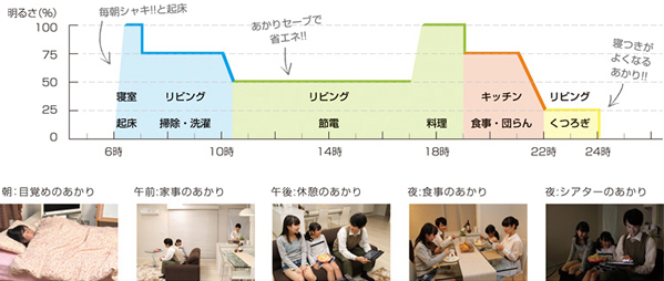 24時間をひとつのサイクルとし、個人の生活スタイルにあった好みの照明シーンを記憶させることができる