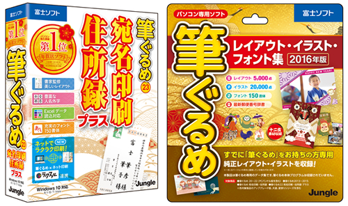ジャングルは、ハガキ作成ソフトの最新版「筆ぐるめ 23」シリーズ、旧バージョンやPCプリインストールユーザー向けの素材・フォント集「筆ぐるめ レイアウト・イラスト・フォント集 2016年 POSA版」を9月4日に発売する。