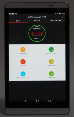 ベンチマークアプリ「AnTuTu Benchmark」でトータルスコア「47138」を記録