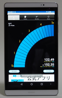 「MediaPad M2 8.0」はタブレットとしての基本スペックも充実している。CPUはオクタコア(8コア)プロセッサー「Kirin930」をタブレットとしては初めて採用。この「Kirin930」は、2GHzで動作する高性能なCortex-A53コアを4基、1.5GHzで動作する低消費電力なCortex-A53コアを4基内蔵するスグレモノ。利用するアプリケーションによって1コアから8コアまで組み合わせを変えて稼働することで、ハイパフォーマンスと省電力性能を両立できる。ベンチマークプログラム「AnTuTu Benchmark」で計測したところ、トータルスコアで「47138」と2015年に発表・発売された最新スマートフォンを超える高いスコアを記録した。