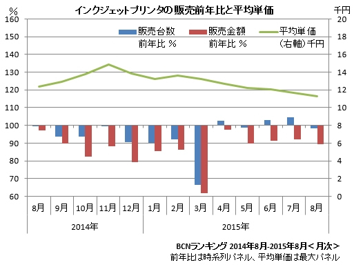 キヤノン、エプソン、ブラザーと、インクジェットプリンタ上位3社の2015年新製品が出そろった。今年は例年にも増して3社それぞれが特色のある製品を打ち出している。市場は販売台数の伸び悩みが続き、販売金額は17か月連続で前年割れ。平均単価もジリ下げの状況でさえないが、新製品効果で市場を活性化できるだろうか。