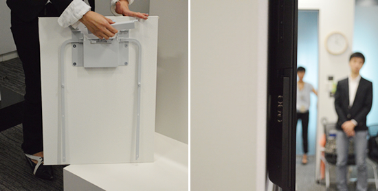 「X9000C」シリーズは、台座やラックにスタンドで設置する一般的な“据置き”スタイルのほかに、省スペースで大画面を満喫できる“壁かけ”スタイルを提案している。一般的な液晶テレビだと、壁にかけたときに、本体と壁の間に隙間が生じ、それによってできる影が映像への没入を阻害していたが、「X9000C」シリーズは超薄型パネルと特殊な壁かけ金具でその問題を解決。ぴったりと壁に張りつく“壁ピタデザイン”を採用し、一体感のある設置を実現した。