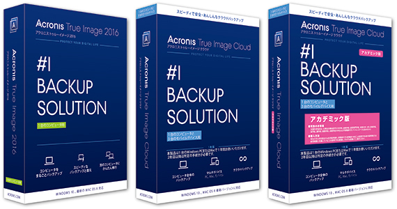 左から「Acronis True Image 2016」「Acronis True Image Cloud」「Acronis True Image Cloud(アカデミック版)
