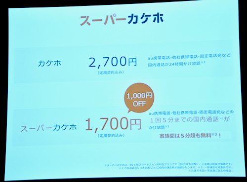 KDDI、5分以内の通話が無料になる月額1700円の「スーパーカケホ」、9月18日から