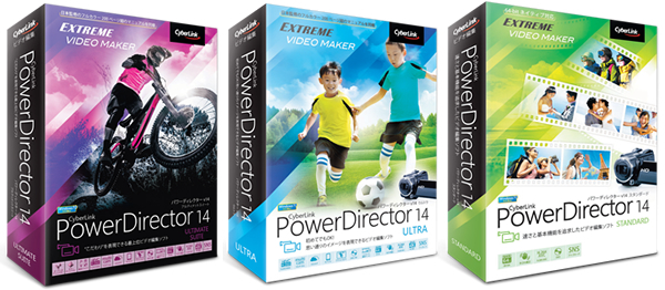 ラインアップは、「Director Suite 4」「PowerDirector 14 Ultimate Suite」「PowerDirector 14 Ultimate」「PowerDirector 14 Ultra」「PowerDirector 14 Standard」の5製品。