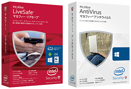 「マカフィー リブセーフ」(左)と「マカフィー アンチウイルス」
