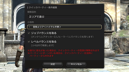 ミッションや冒険エリア、レベル差などの条件を設定すれば、