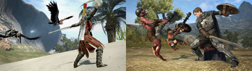 戦闘の立ち回りに大きく影響する「ジョブ」も重要な要素だ。スタート時にはファイター・ハンター・プリースト・シールドセージの4ジョブを選択すること ができる。谷中運営プロデューサーいわく、初心者におすすめなのは剣と盾を装備し、攻防両方のバランスがとれた「ファイター」。「ボタンを連打するだけ で、爽快なコンボ技を繰り出せます。それこそモンハンのような操作感で楽しめると思いますよ」と、推奨する。