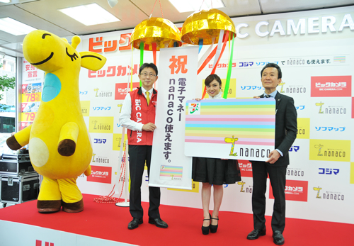 10月1日からセブン&アイグループの店舗で使われている電子マネー「nanaco」が、ビックカメラグループの全国220店舗でも利用できるようになった。同日、両社がビックカメラ有楽町店で、スタート記念を祝うイベントの開催とキャンペンを実施した。同社はこれにより、主要電子マネーを制覇した。