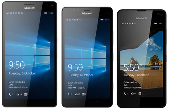 (左から)Lumia 950 XL、Lumia 950、Lumia 550