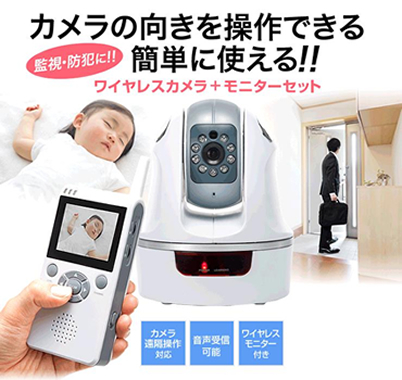 ワイヤレスカメラとモニタのセット、遠隔操作で向きを変えられる