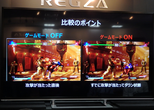 「4KレグザエンジンHDR PRO」では、4Kゲームの高速レスポンスも意識して開発。「4Kゲーム・ターボ プラス」では、1080pや120Hz入力の対応に加えて、約0.83msecの低遅延を実現した。ボタンを押してから表示までの差が少ないので、格闘ゲームのスコアに影響を及ぼすほどの高速レスポンス性を高めた。