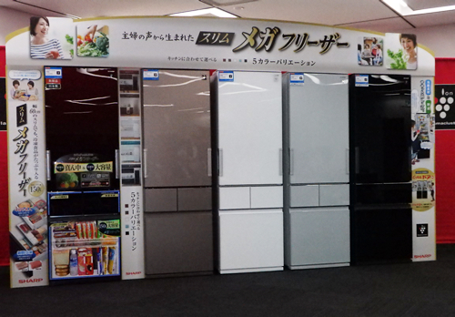 各社が700Lクラスと冷蔵庫の大容量化を進めるなか、シャープは410Lクラスの容量で幅60cmの小ぶりな冷蔵庫を投入するニッチ戦略をとる。「こ のゾーンの冷蔵庫はバリエーションがとぼしく、幅60cmの限られたスペースしかないマンションに暮らす方にとって選択肢が少なかった。150Lの大容量 冷凍室の冷蔵庫を提案して、ニッチ市場で新しいジャンルを確立したい」と、シャープのコンシューマーエレクトロニクスカンパニー健康・環境システム事業本 部メジャーアプライアンス事業部長の菅原靖文氏は説明する。